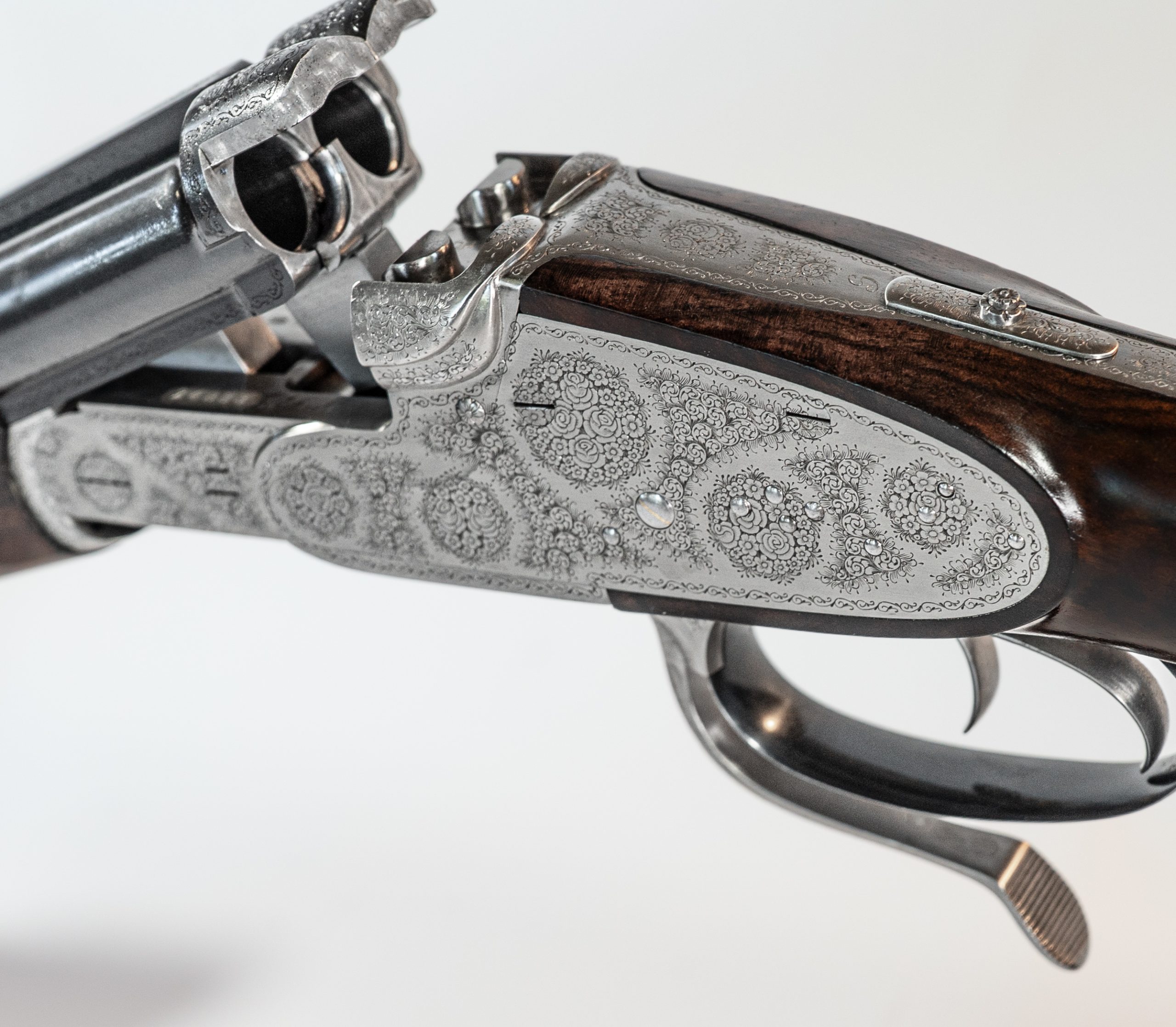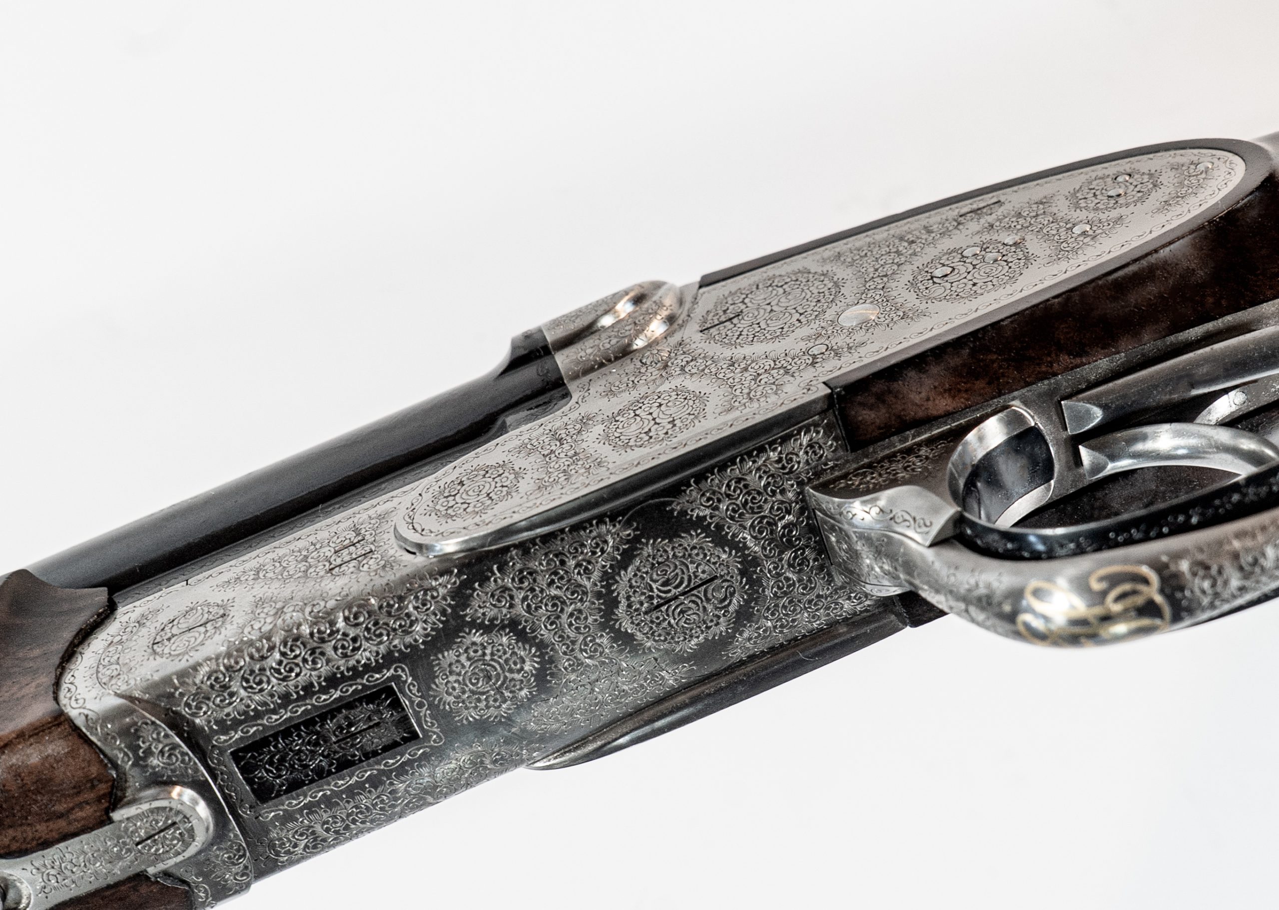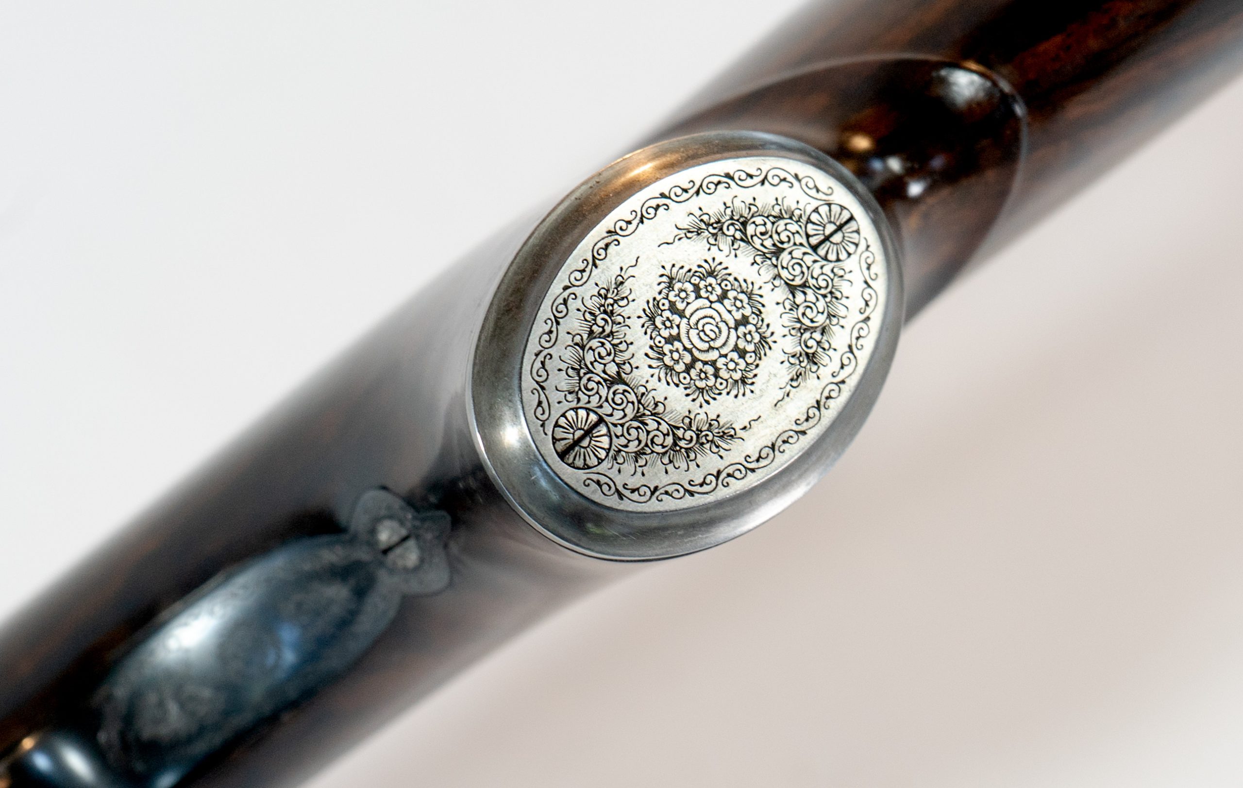Schaft: Sehr feiner Wurzelmaserholzschaft.